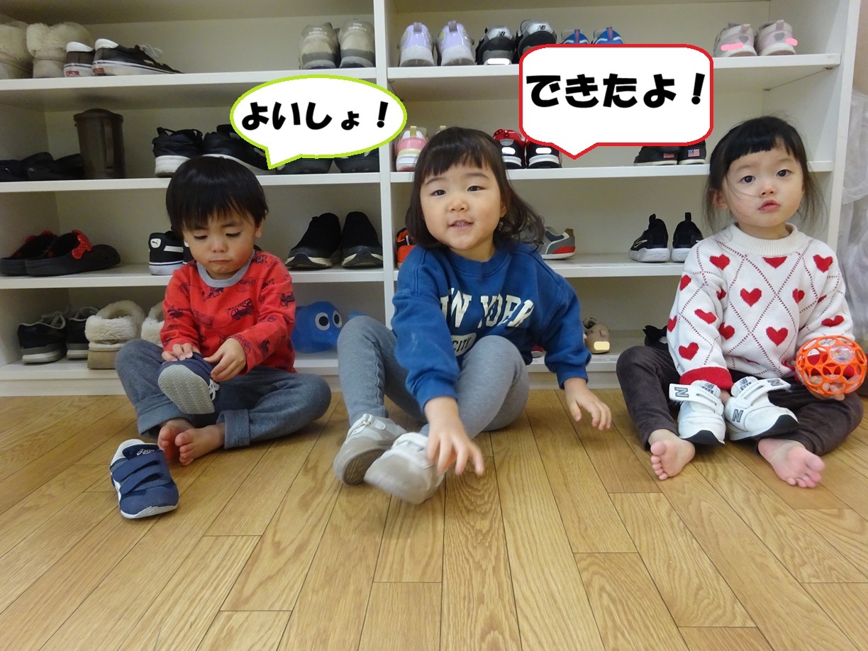 靴下や靴を履く際には、「やってみよう」とする気持ちを大切にしながら、身の回りのことに少しずつ自分から関わろうとする姿が見られます😊