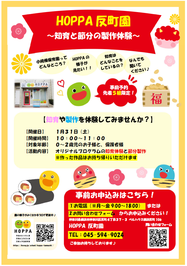 【神奈川県川崎市】令和8年度 0~1歳児 園児募集について/イベントのお知らせ【HOPPA反町園】