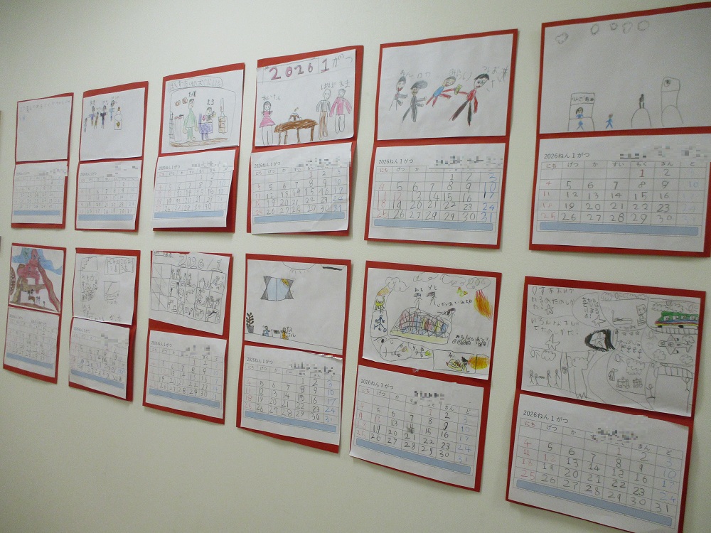 シリウスクラス(5歳児)さんは、毎月カレンダー製作をしていますが、1月は“印象に残っていること”をテーマに、印象に残った出来事を描いています。