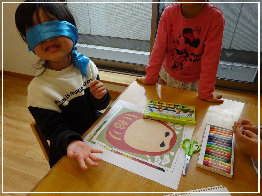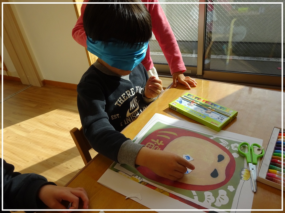 正月遊びの福笑いにも挑戦しました。