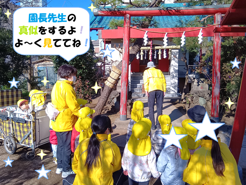 早速参拝です!園長先生にお手本を見せてもらいます。