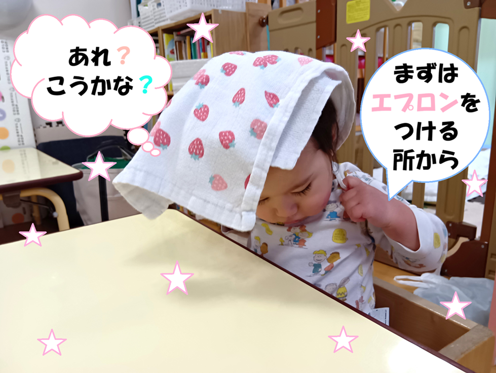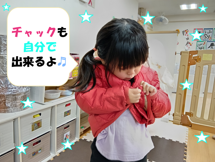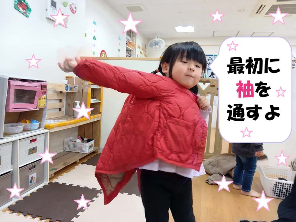 - 上着を一人で着る事が出来るようになりました。