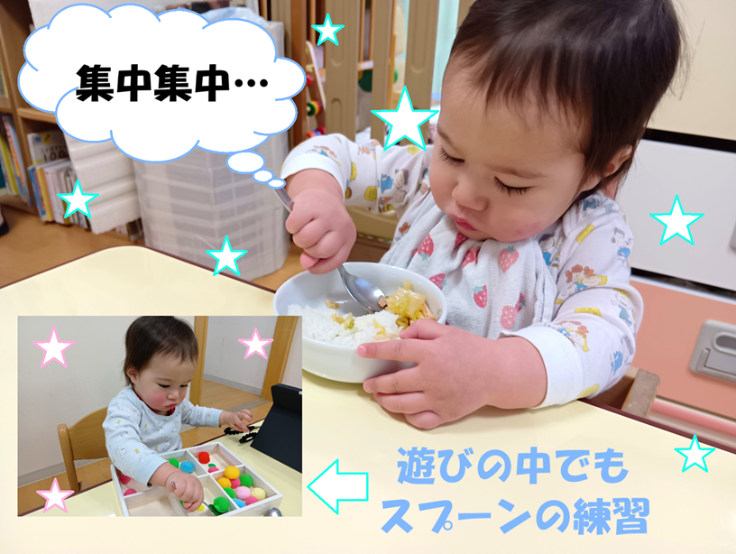 食べるのが大好きな子ばかりなので口に運ぶのが、すぐに上手になりました!