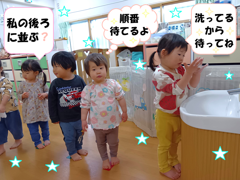 - 手洗いの時に並ぶことが出来るようになりました。