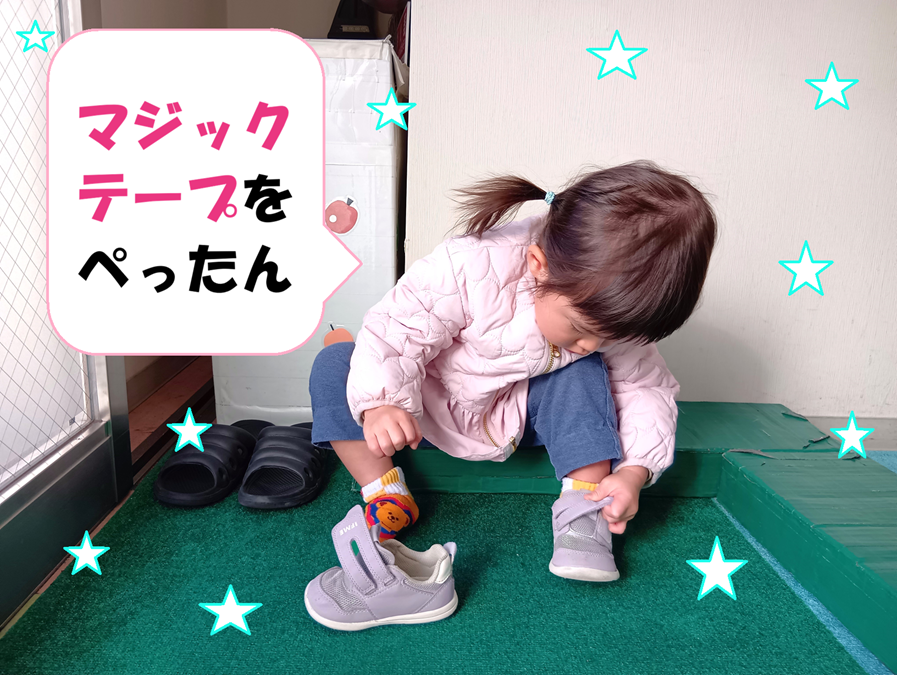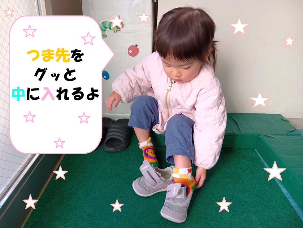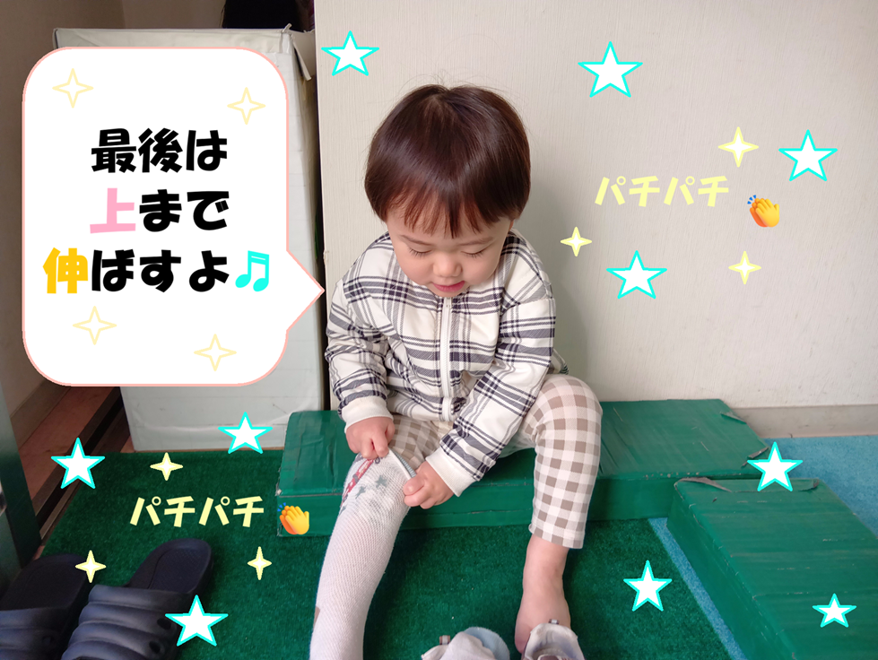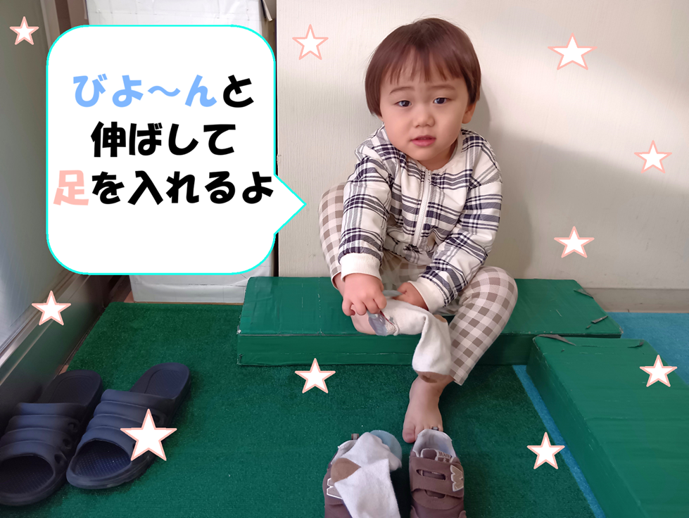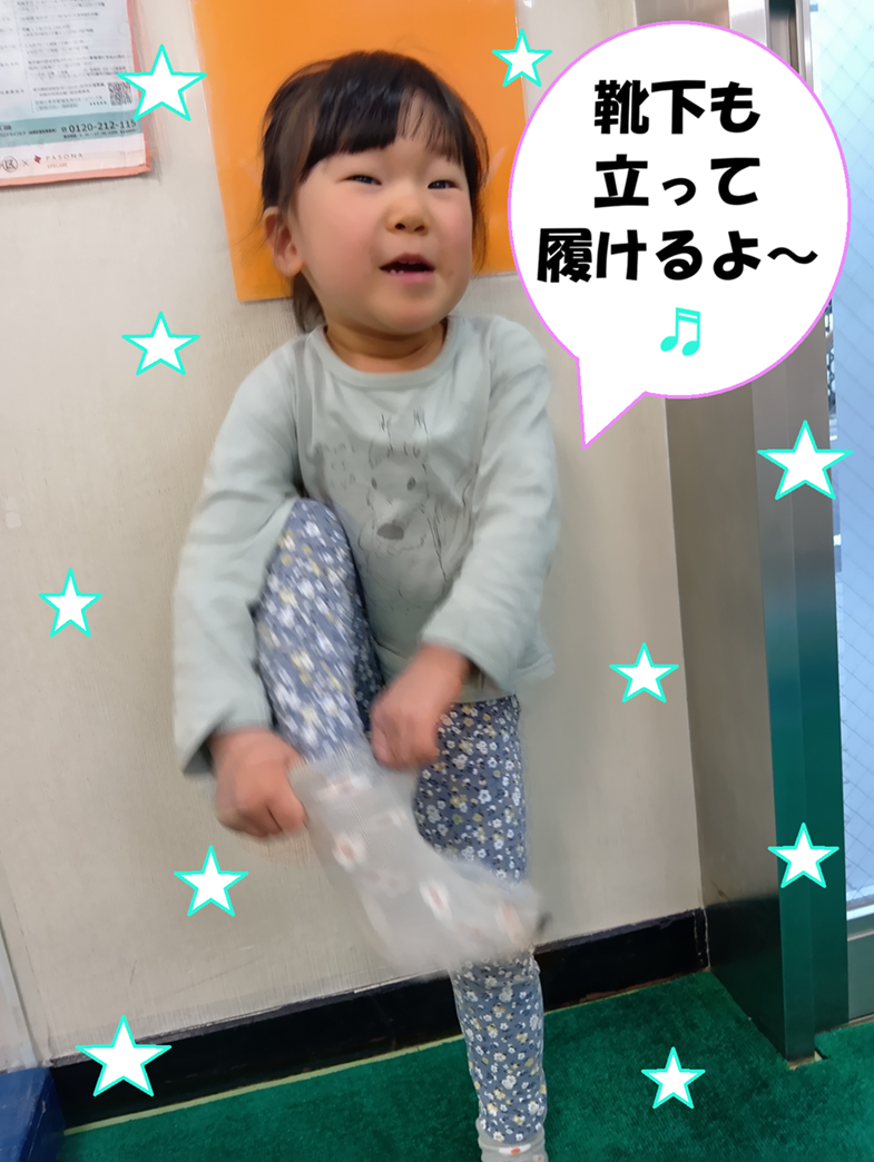 「立ったまま靴を履ける?」と聞くと「靴下も履けるよ~」と見せてくれました!