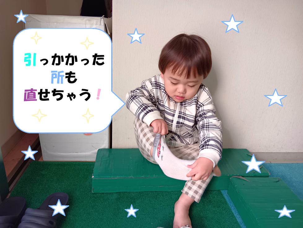 - 靴と靴下を自分で履く事が出来るようになりました。