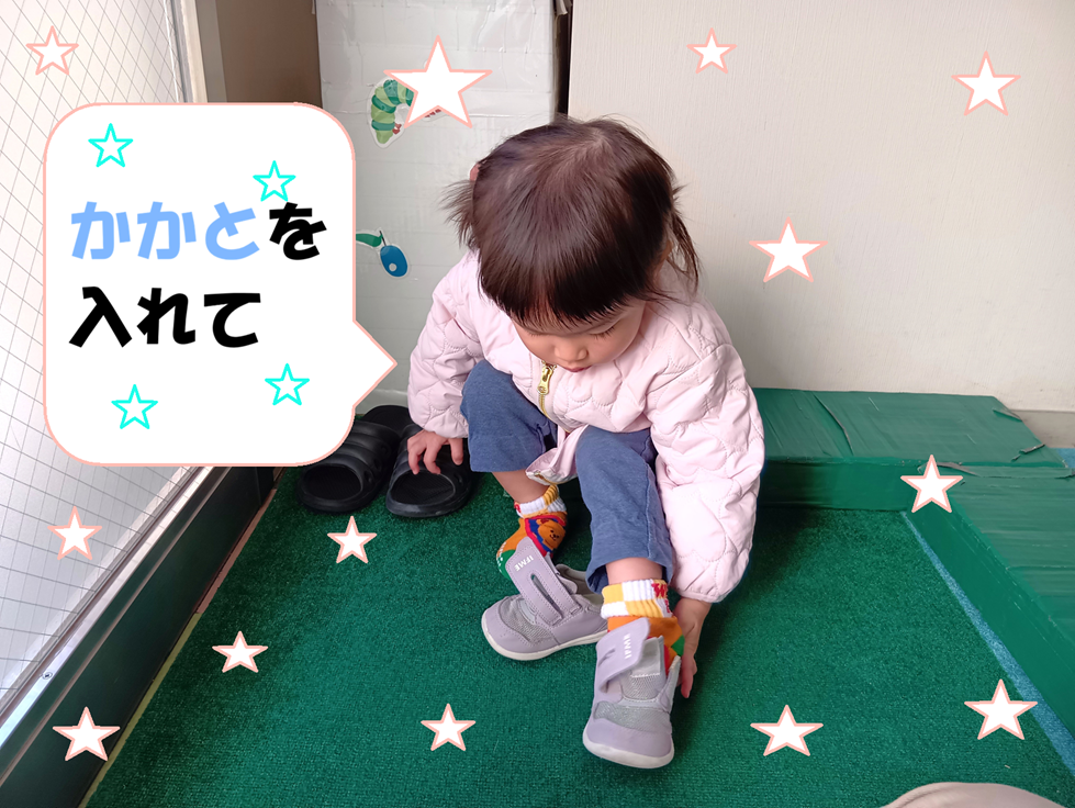 靴を履く時には、かかとに気を付けて上手に足を入れています。