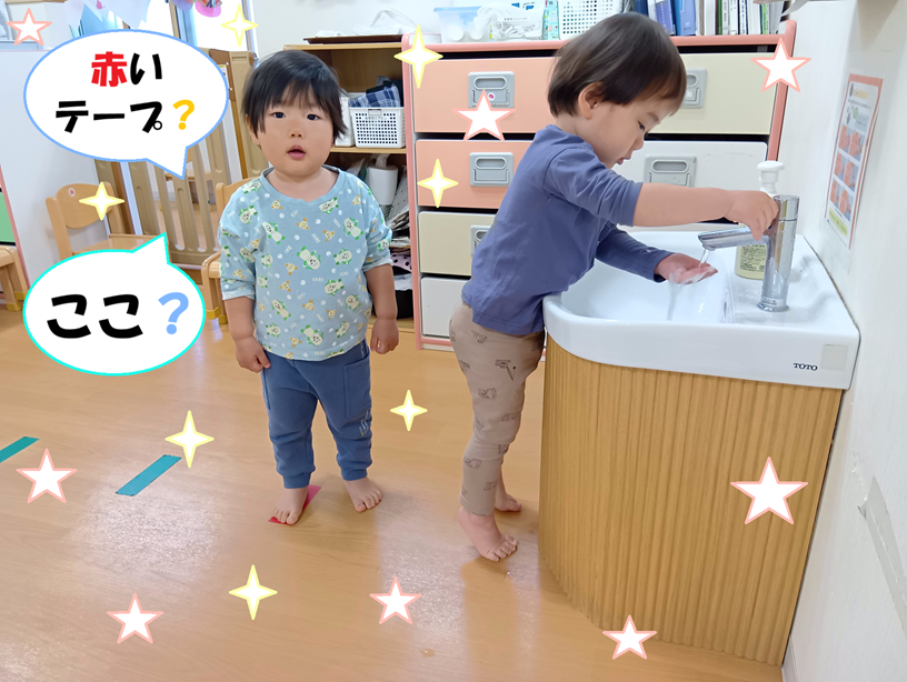 - 手洗いの時に並ぶことが出来るようになりました。