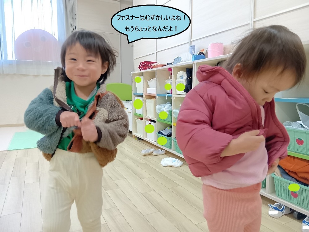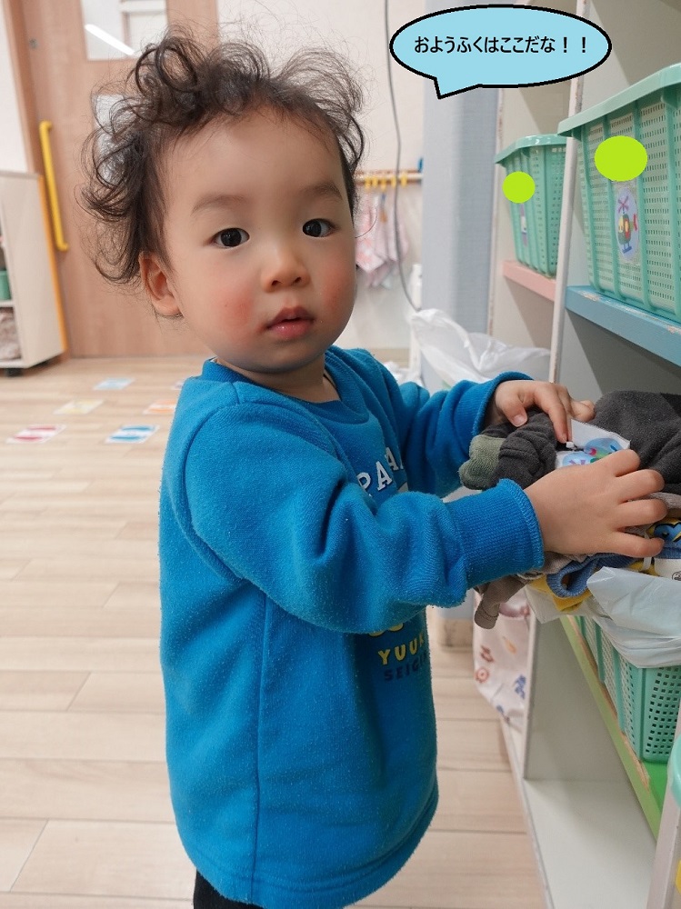 リゲル組さんは、進級に向けて脱いだ服を自分で畳んだり、上着のファスナーを自分で上げることに挑戦しています!