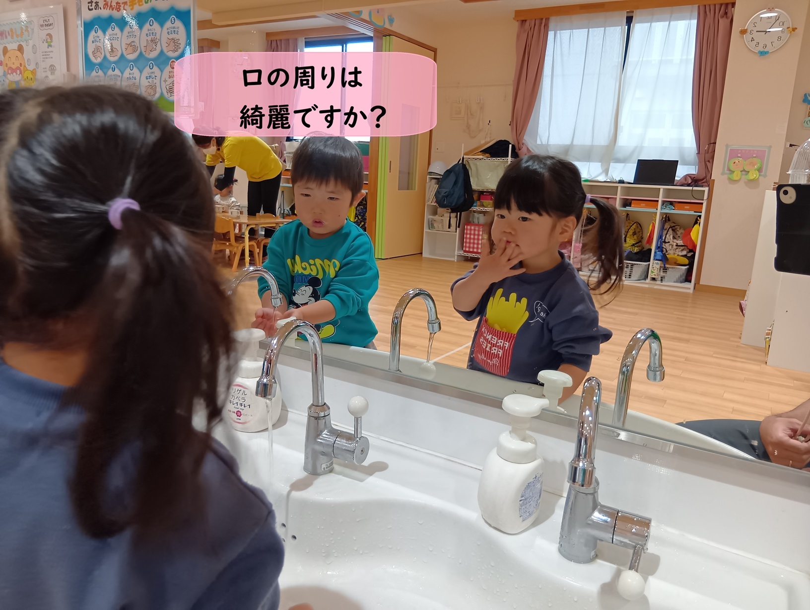 食事の後は口の周りもしっかり洗います。