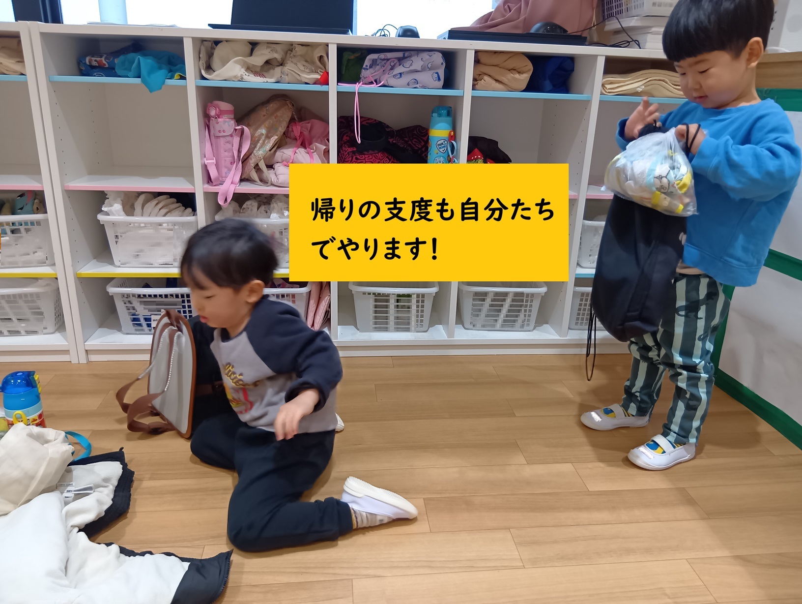 今回は、身支度・食事・おやつ・片付け・お散歩準備など、進級に向けた大切な経験について紹介しようと思います。