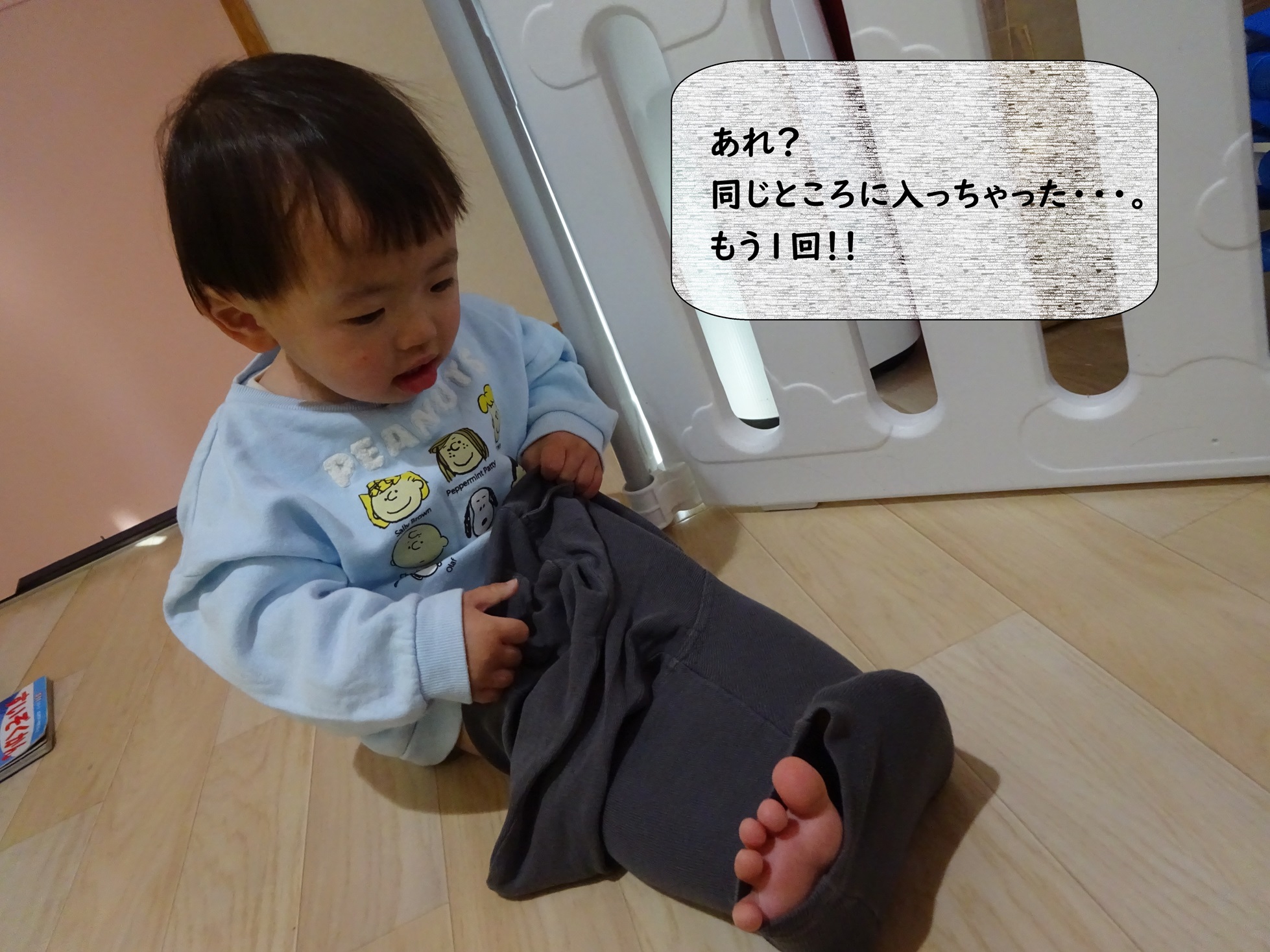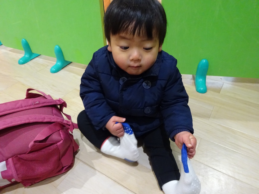 床に座ってズボンに足を入れたり、靴下を引っ張って履こうとしたり…うまくいかなくても何度も挑戦する姿に“自分でやりたい”気持ちの芽生えを感じます✨