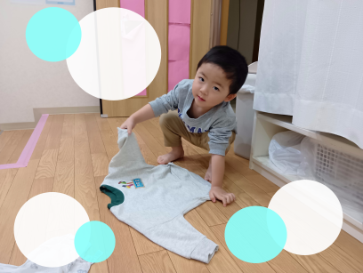 リゲル組の子どもたちは、身の回りの事は自分でやりたいという気持ちが強くなり、脱いだ洋服も上手にたためるようになりました!