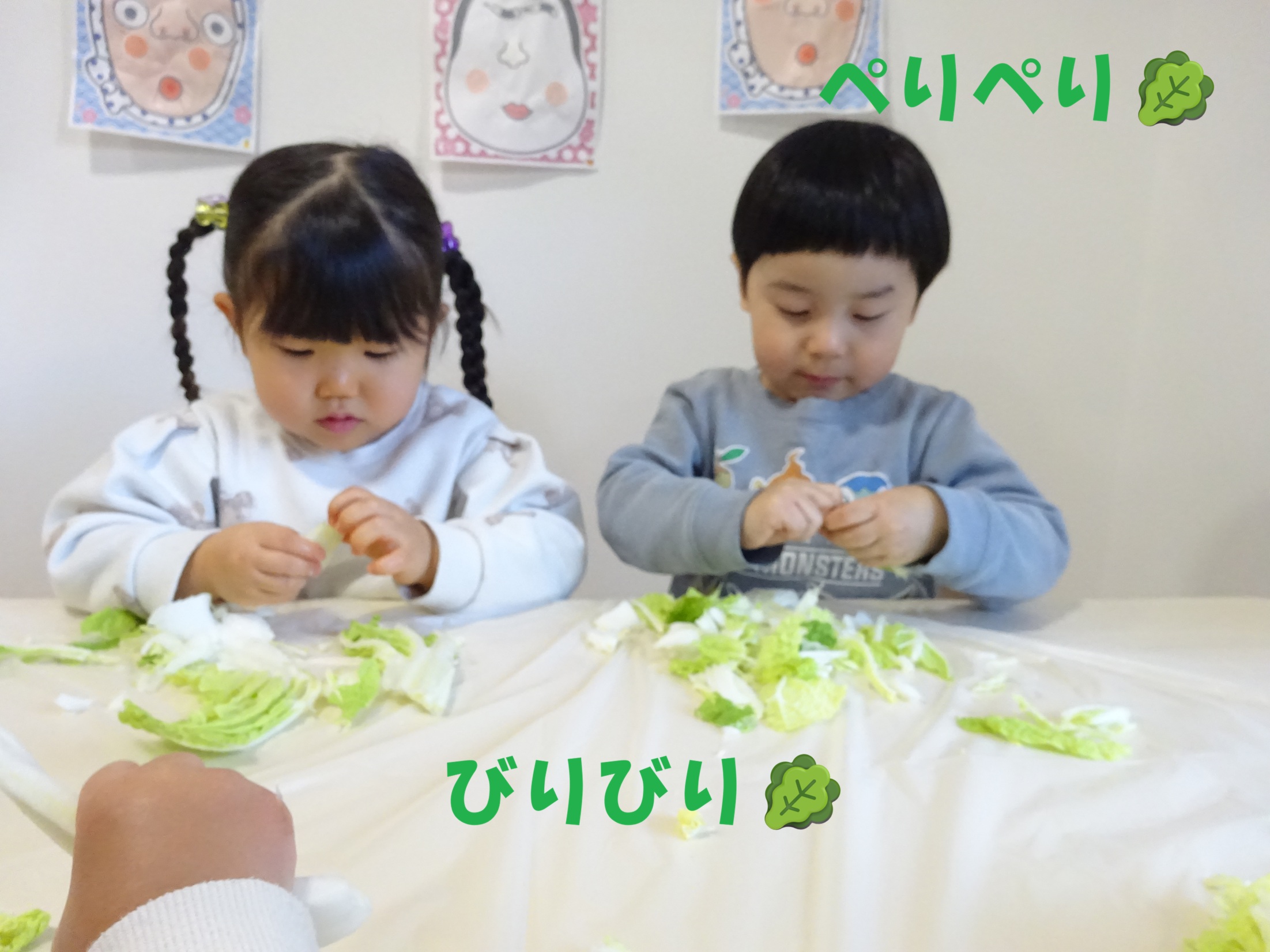 食育では「白菜ちぎり」を行いました🥬
