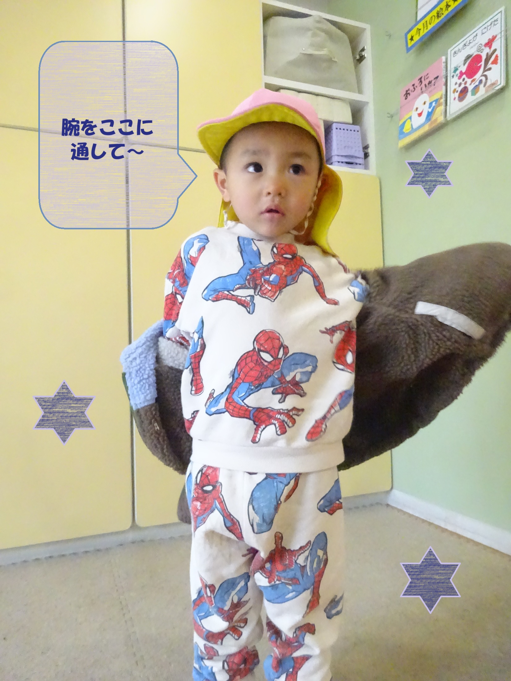袖を通すところやチャックなど難しいところも「自分でやる!」と自分でやってみようとする意欲がとても素敵ですね✨