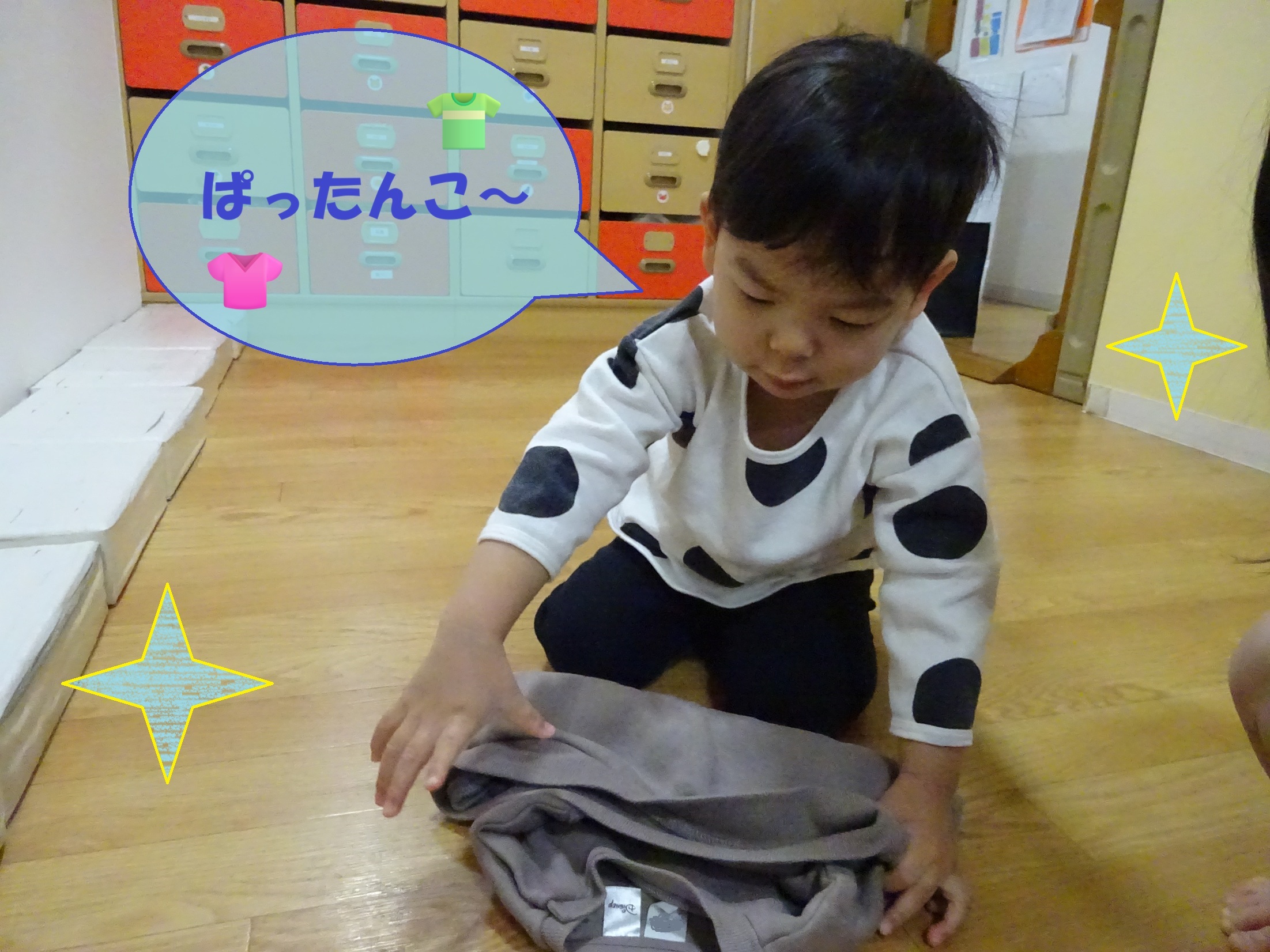 自分で畳み方を言いながら畳んでいます👕