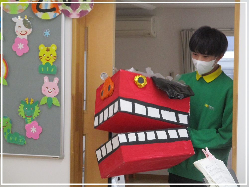 新年の集いでは、十二支の由来や獅子舞について学びました。