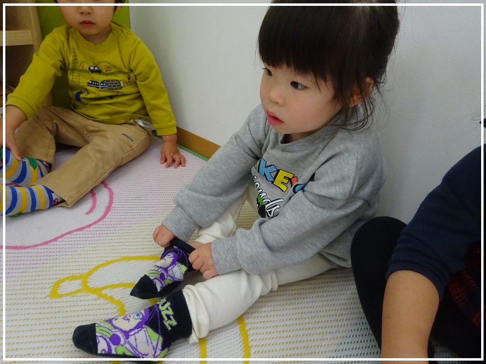 リゲル組(2歳児)のお友だちは、脱いだ服を自分で畳んでしまいます。