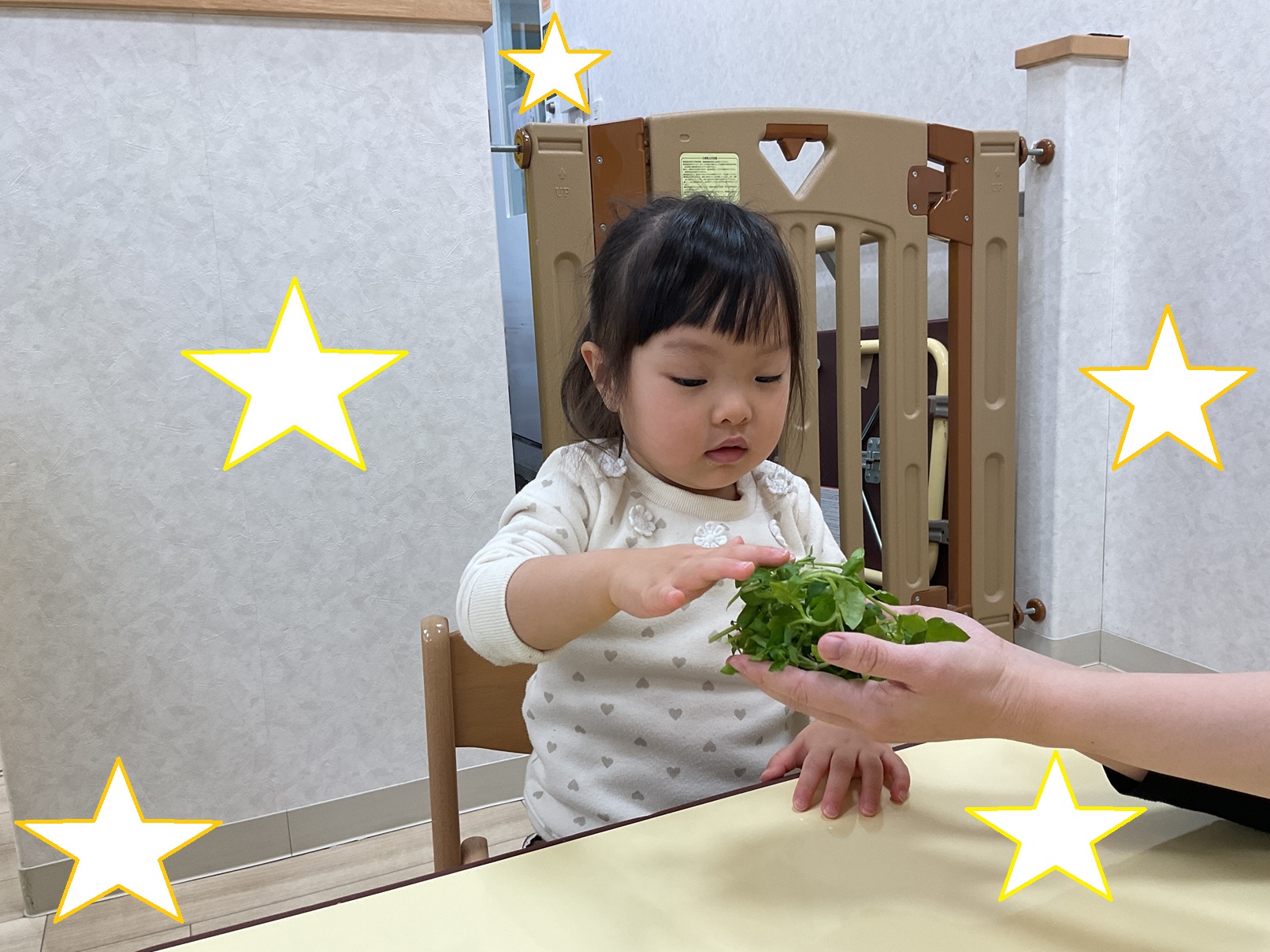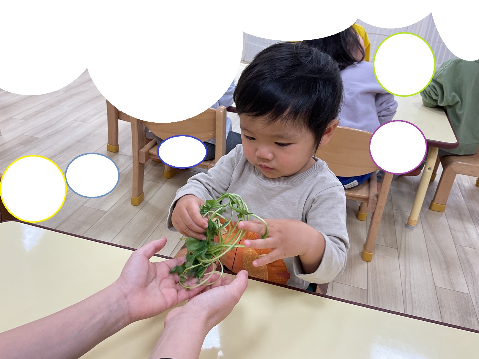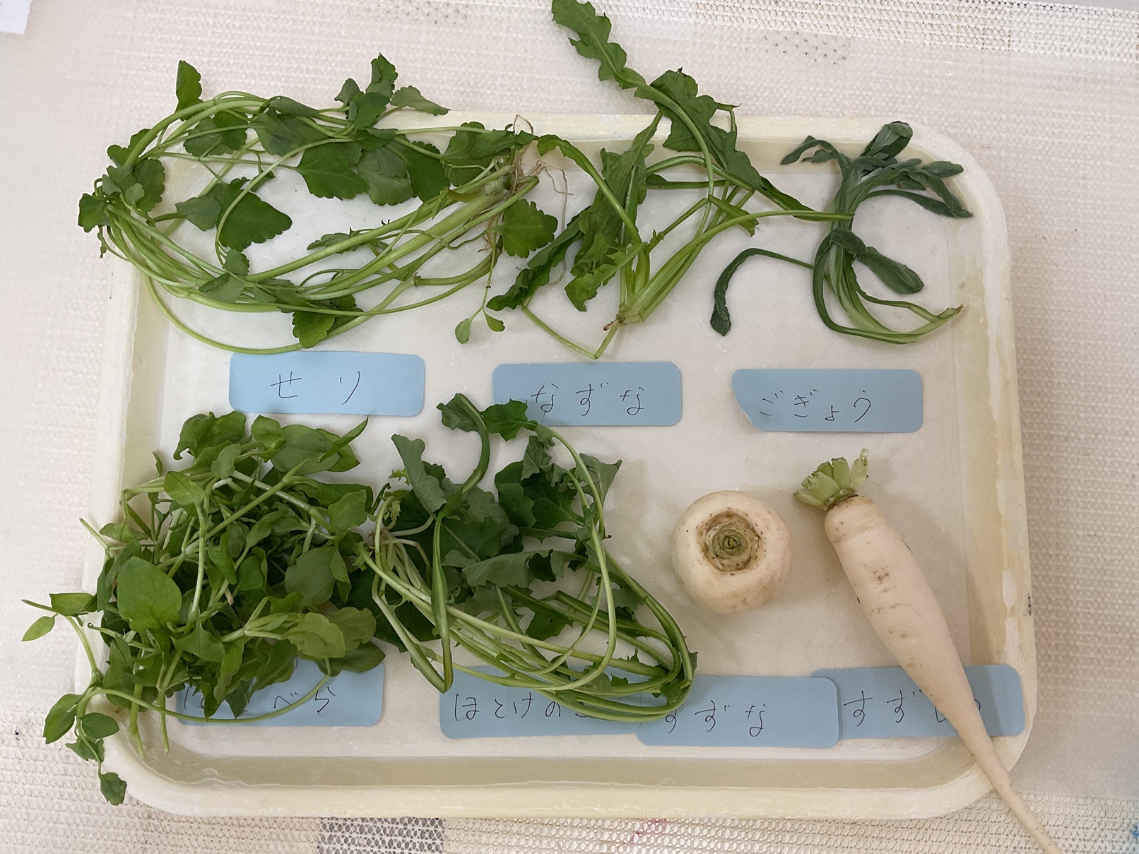 初めて見る七草に最初は固まってしまう子どもたち。