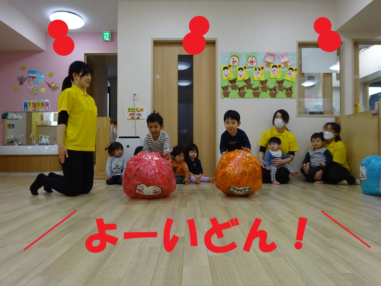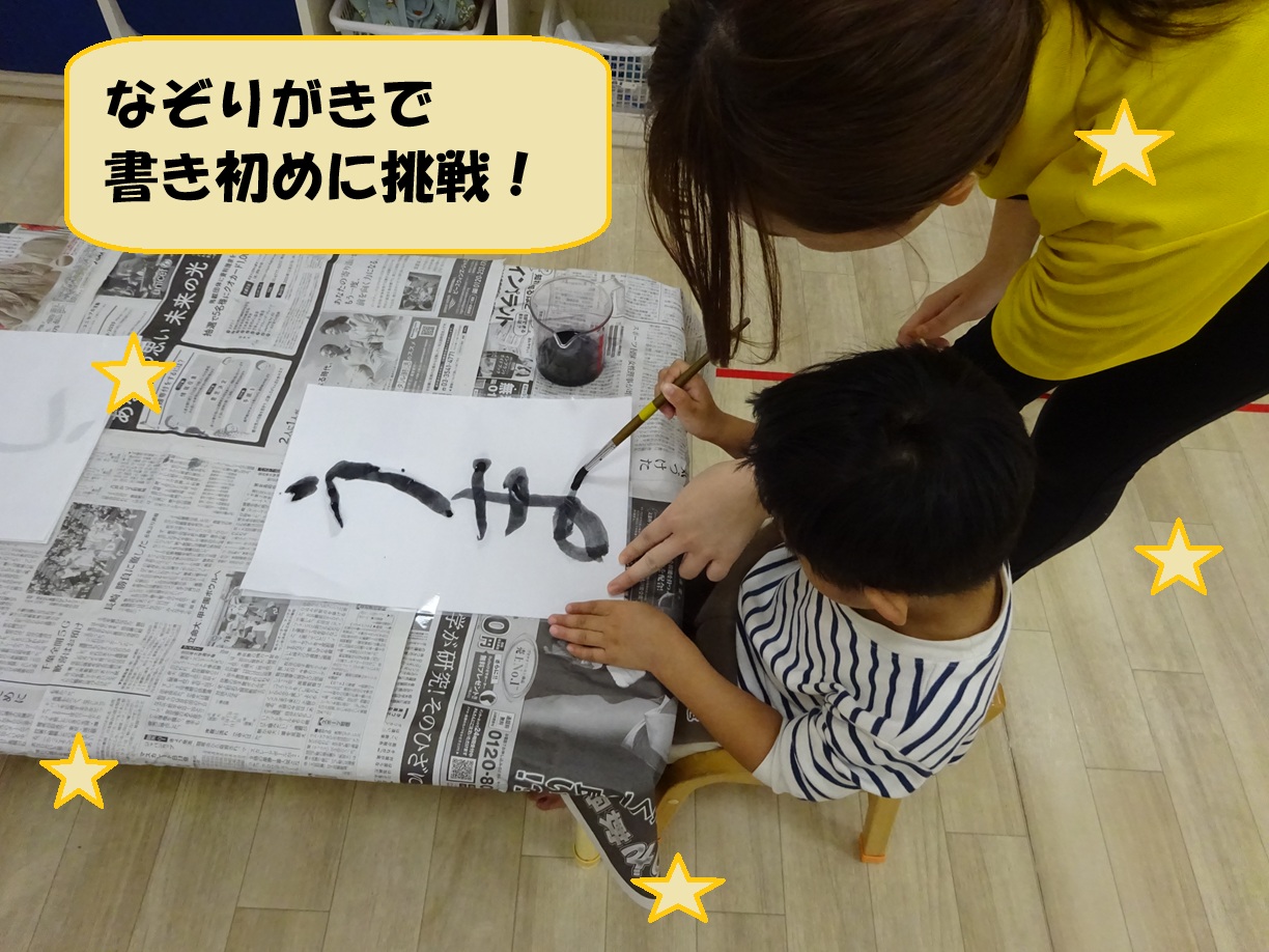 HOPPA下沼部園では書き初めやだるまさん転がしレース、福笑いなどのお正月遊びをして元気いっぱい新年を迎えましたよ。
