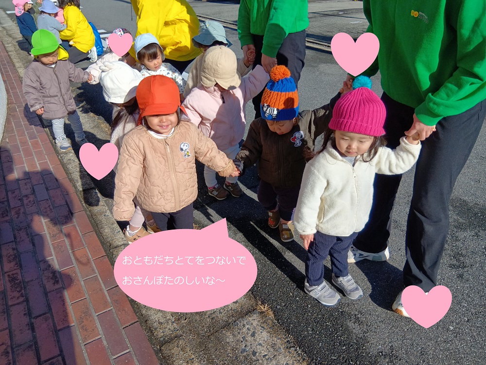 ベガ組(1歳児)は、お友だちと手を繋いで歩いています!