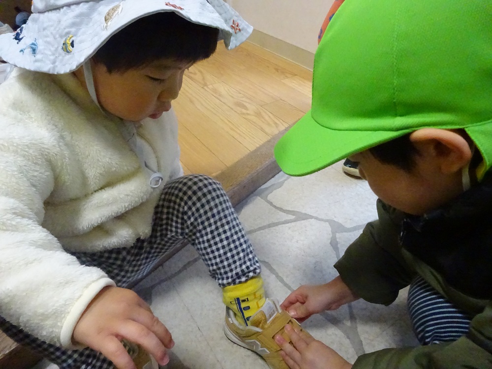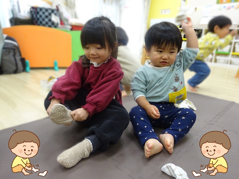 例えばスピカクラスやベガクラスでは靴下を履かせる時は土踏まずくらいまで靴下をはめて、最後は自分で上げる練習をしています。