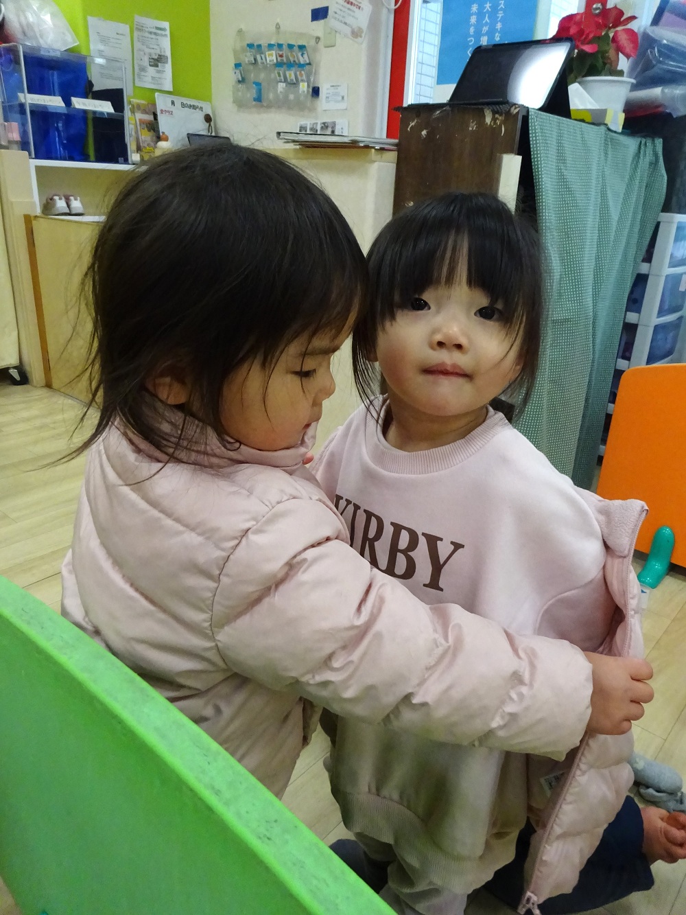 シリウスクラスの子がベガクラスの子に靴を履かせてあげたり、上着を脱がせてあげたりしていますね💛