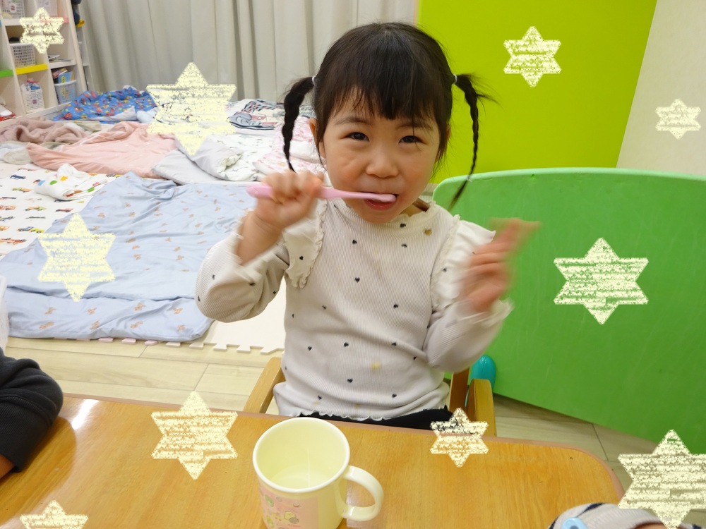 子どもたちには、歯磨きをすることで、歯やお口の中がきれいになり、悪い菌を外に出すことできるということなどを知らせています😊