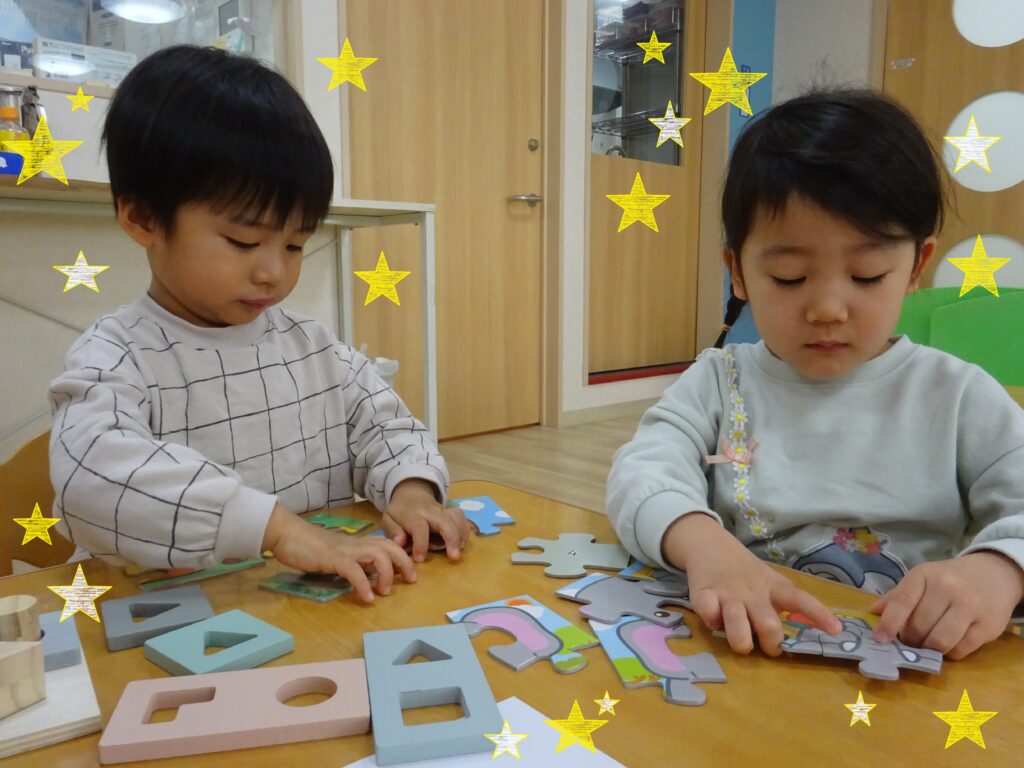 「一人でできたよ!」「こんなもの作ったよ!」と自信に溢れた様子で遊びを楽しみながら、机に向かって座ることができるようになりました✨