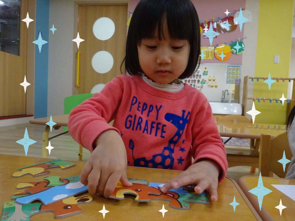 できた時には、保育者に「見てみて!できたよ!」と一生懸命にアピールしてくれます🌼