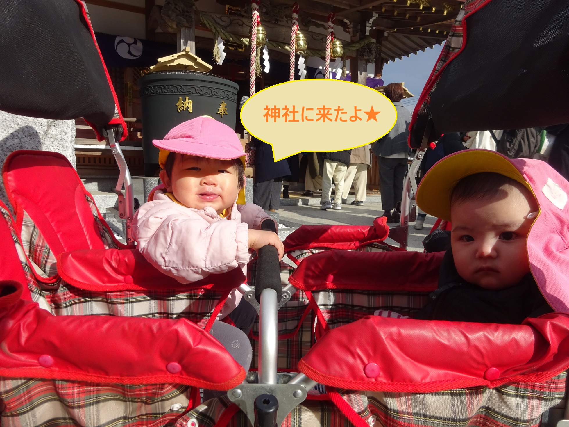 新年最初の登園日は、毎年恒例の八幡神社へ初詣に行ってきました。