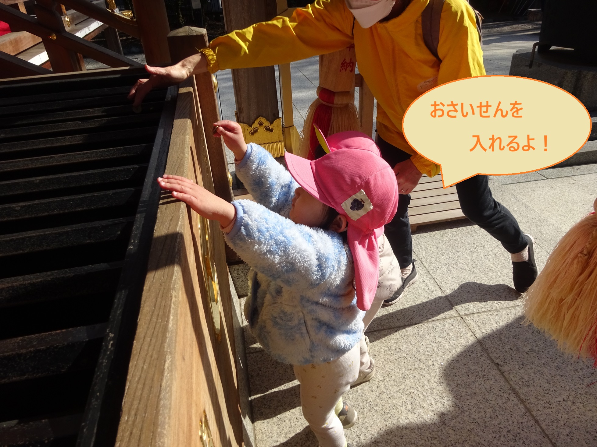 シリウス組(2歳児)が代表しておさい銭を入れます。
