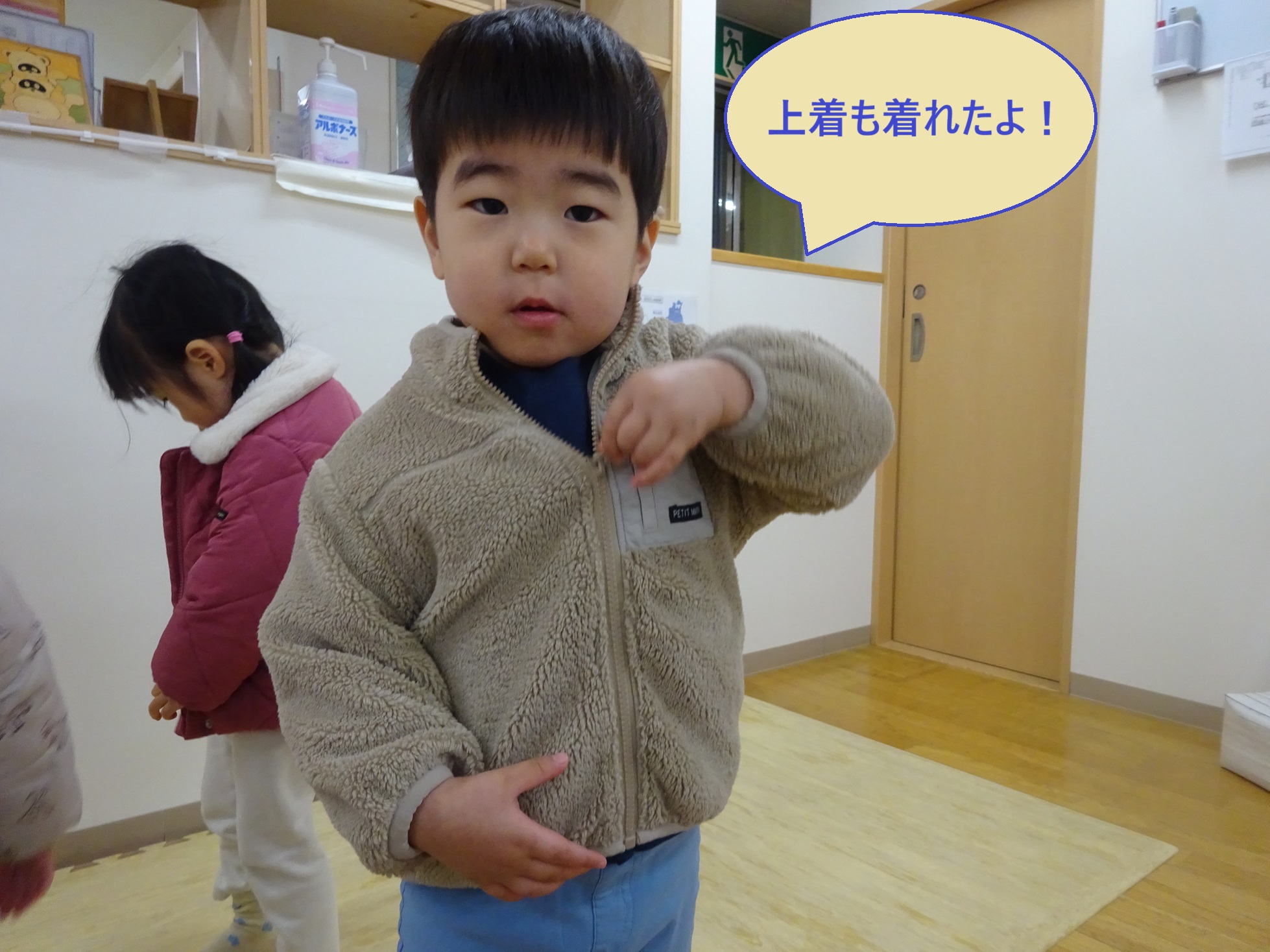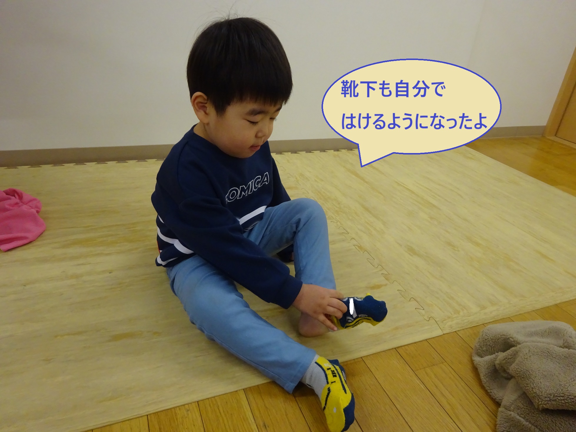 靴下→上着→帽子の流れで準備をするのが身についてきました。