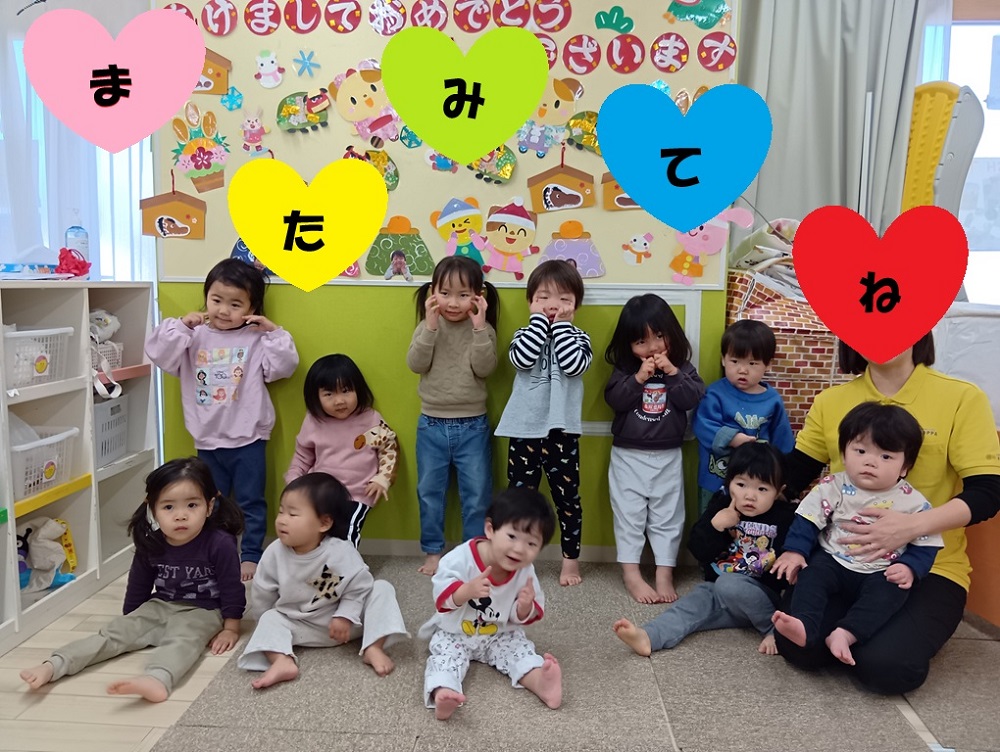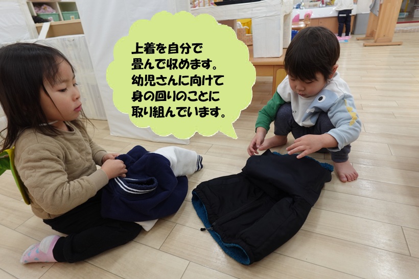 今回は、0歳児・1歳児・2歳児それぞれが進級に向けて取り組んでいる姿を友石がご紹介します。