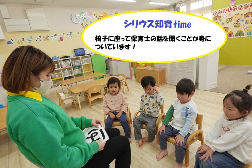 また、知育timeやお集りで保育士の話を聞く習慣も身についています。