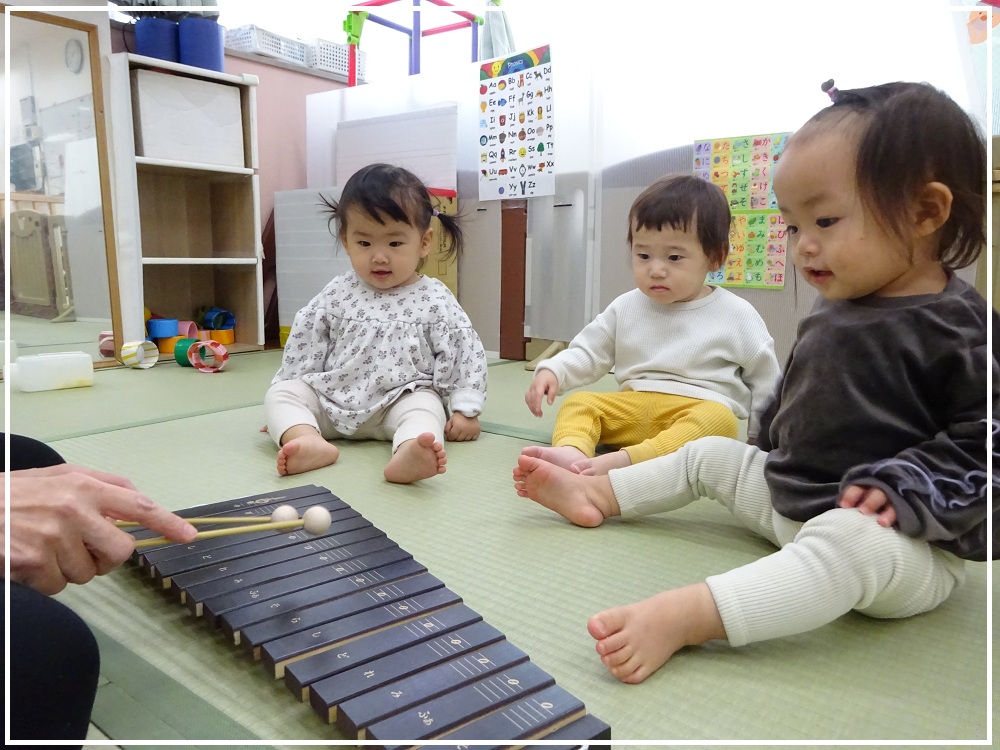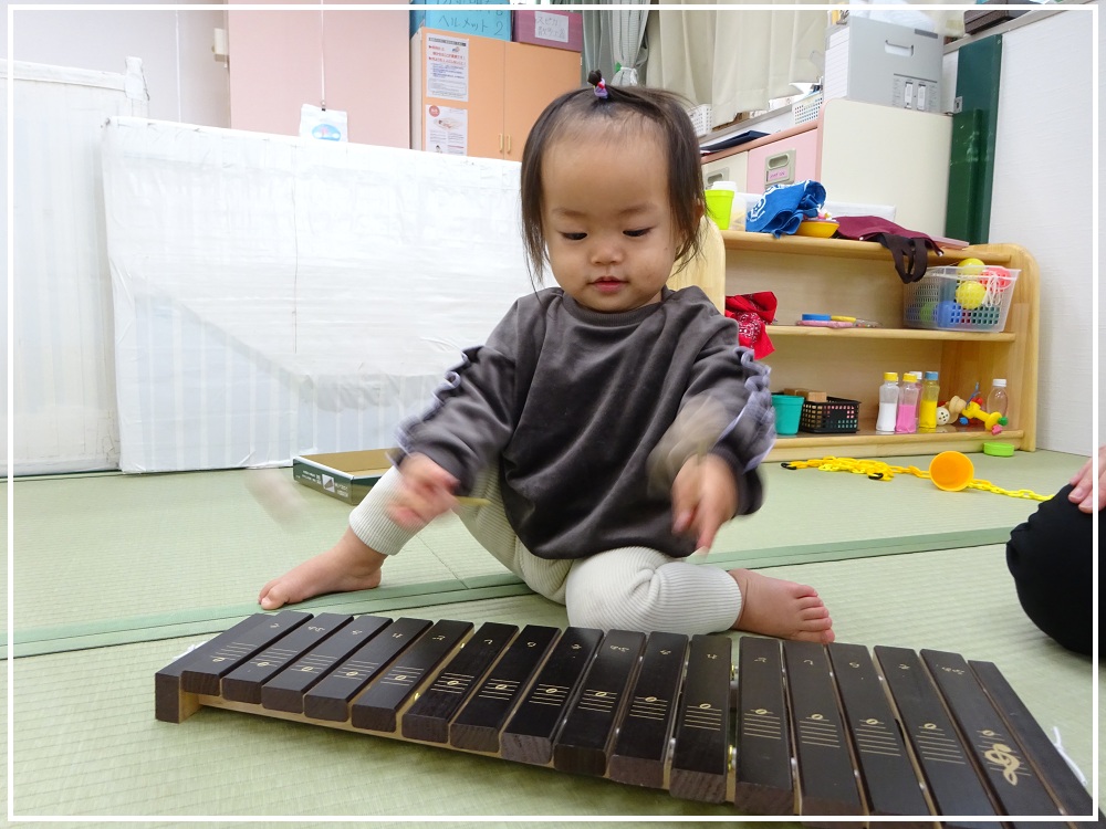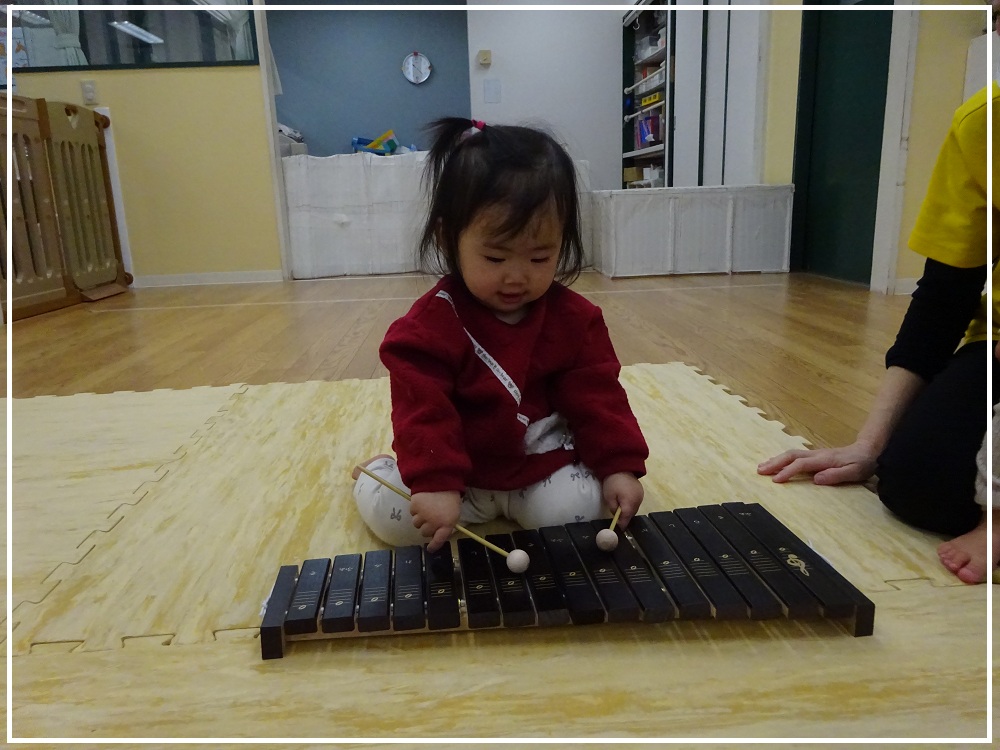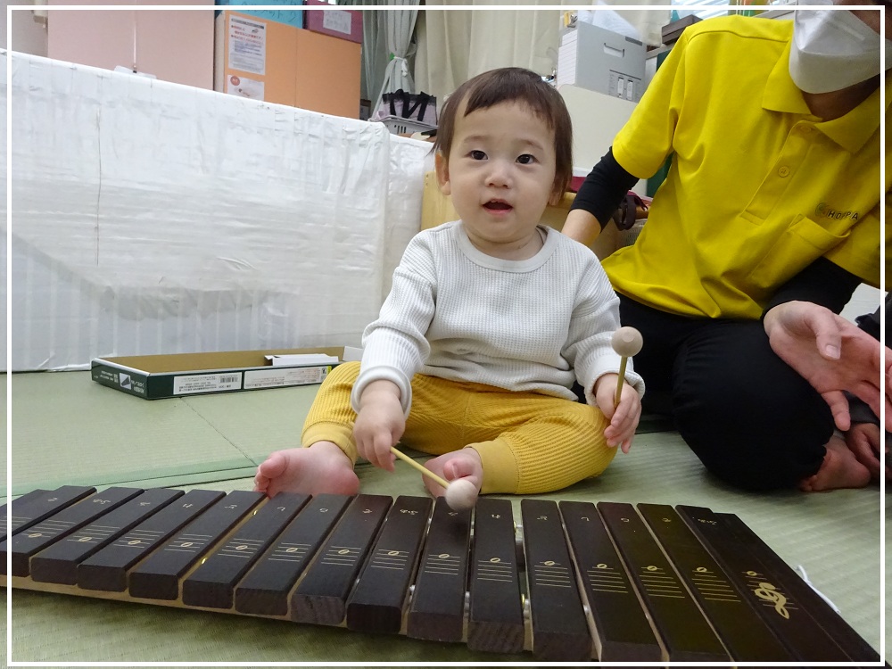 「ドレミファソラシド」と順番に音板を叩いてみると、ふっと真剣なお顔になりました✨