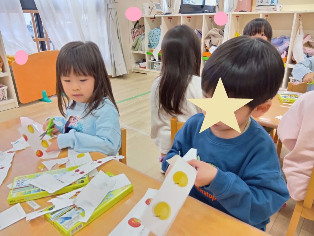 製作の場面で使うためにハサミの連続切りの練習にたくさん取り組んでいますよ。