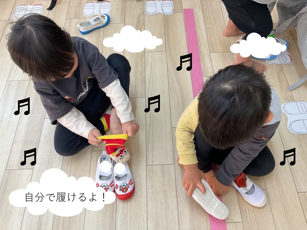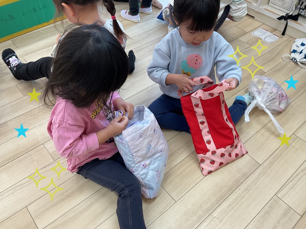 上靴の他にも「自分で」洋服を着替えたり、荷物をリュックにいれたりして、やる気いっぱい!