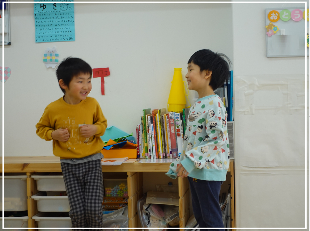 言葉に詰まった友だちに、「こうだよ」「次はこれだよ」と、周りの友だちがそっと教えてあげる姿も😊