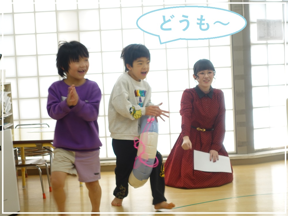 子どもたちは2人組になり、ボケとツッコミに挑戦!
