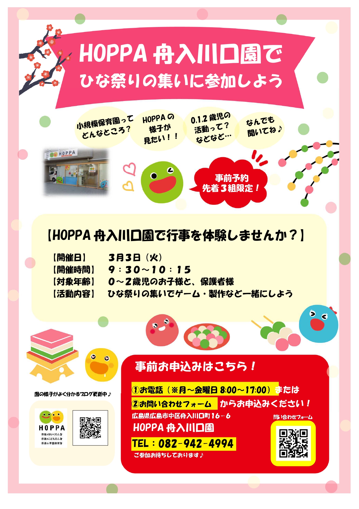 【広島市中区イベント情報】ひな祭りの集い【HOPPA舟入川口園】