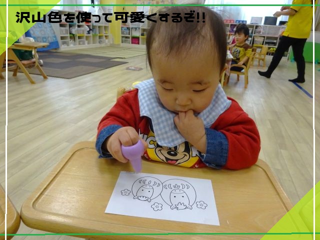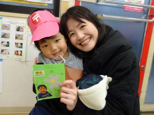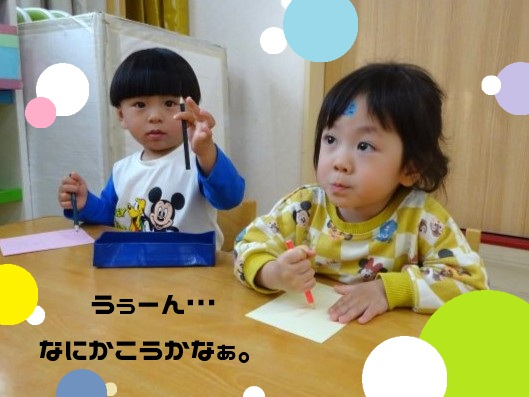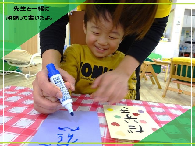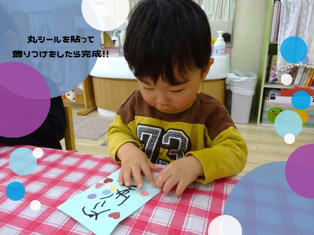 時々、保護者の方に手渡すことを想像し恥ずかしがったりにっこりと笑顔が見られたりとほっこりとしました😄