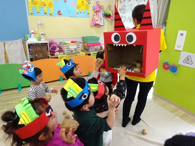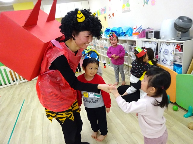 鬼の衣装を着た優しい先生鬼さんが登場!!