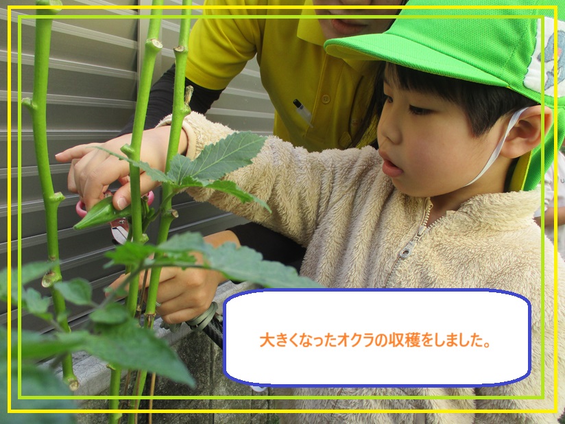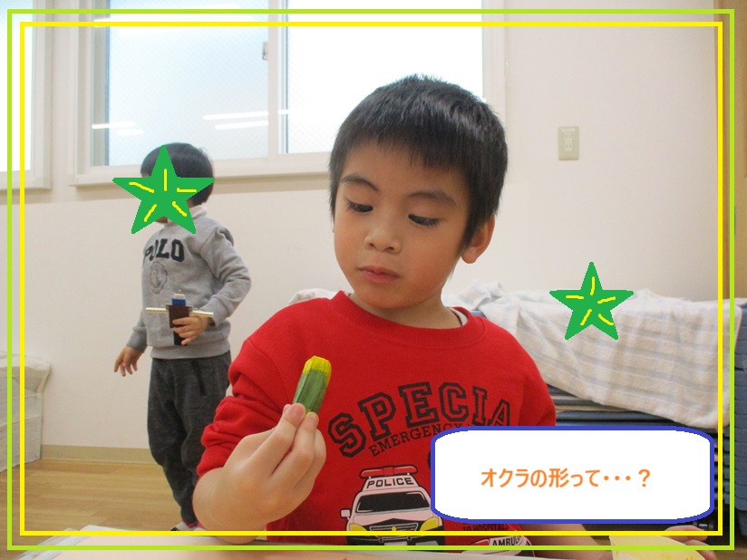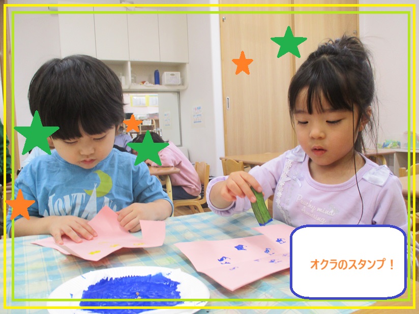 オクラの形をよく観察しながら…スタンプを楽しみました。