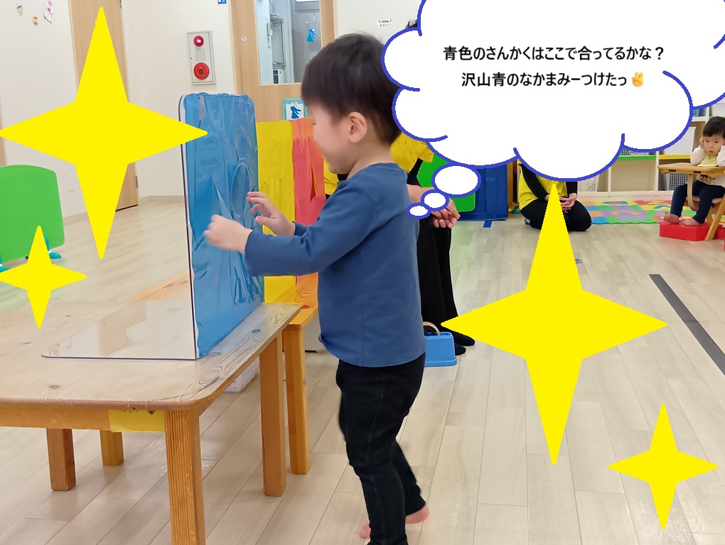 色や形にも興味をもって「あかだよ!」「まるあったよ」と視界に入った身近なものを指差して教えてくれるベガ組さんです!