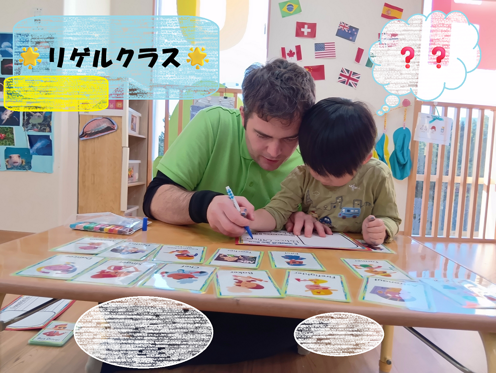リゲルクラス(2歳児)では、好きな職業をカードの中から選んで英語で書きました!