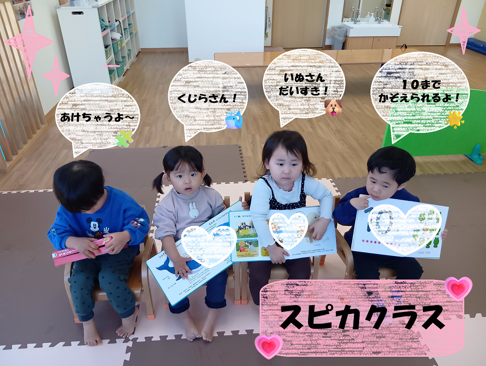 一年間を通して、今までは見ているだけだったひらがなも進んで読んでみようとしたり「なんて書いてあるのかな?」と疑問に思ったり、それぞれ親しみをもって過ごしています!
