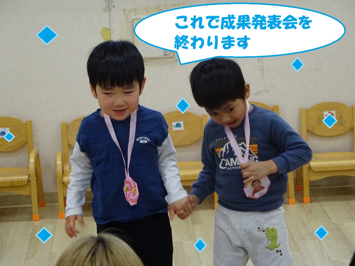 知育timeやEnglish timeの一年間の成果を保護者の皆様に見ていただいてともに成長を喜び合う、とても素敵な行事です!