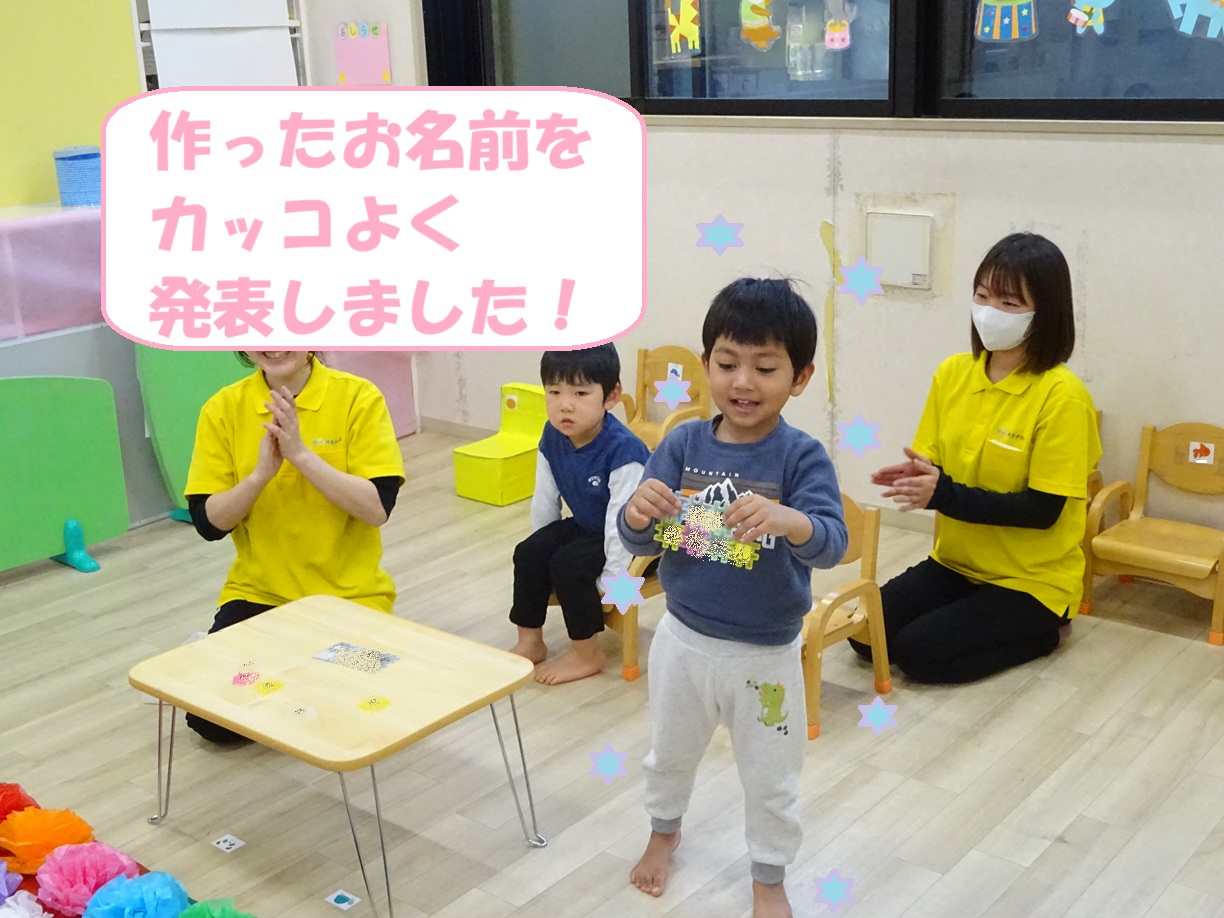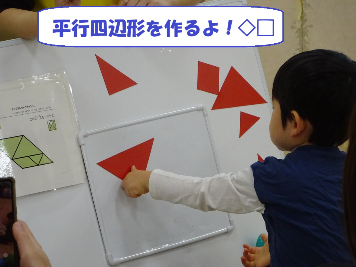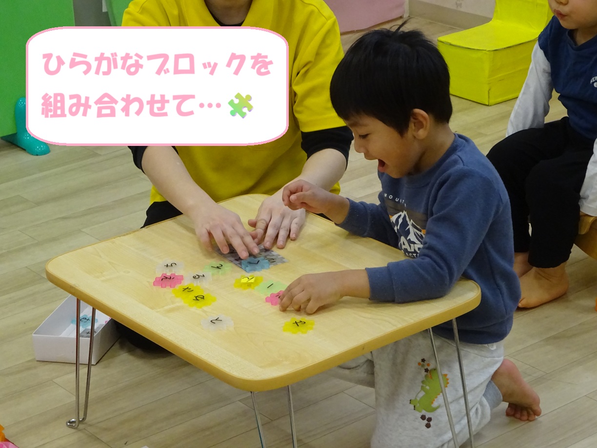 シリウス組(2歳児)さんは、ひらがなのブロックで自分の名前を作ったり、タングラムも披露しましたよ!