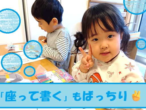 3歳児カペラ組さんでは、ライティング✍への挑戦をしていました。